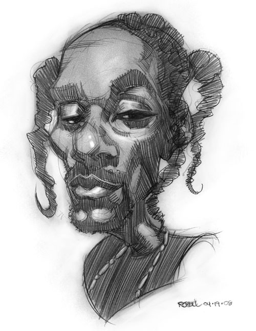 This was a caricature piece I did for a Snoop Dogg thread over at the Drawing Board. Snoop has great features for caricaturing, I think I'll try another pass and try to push it further.